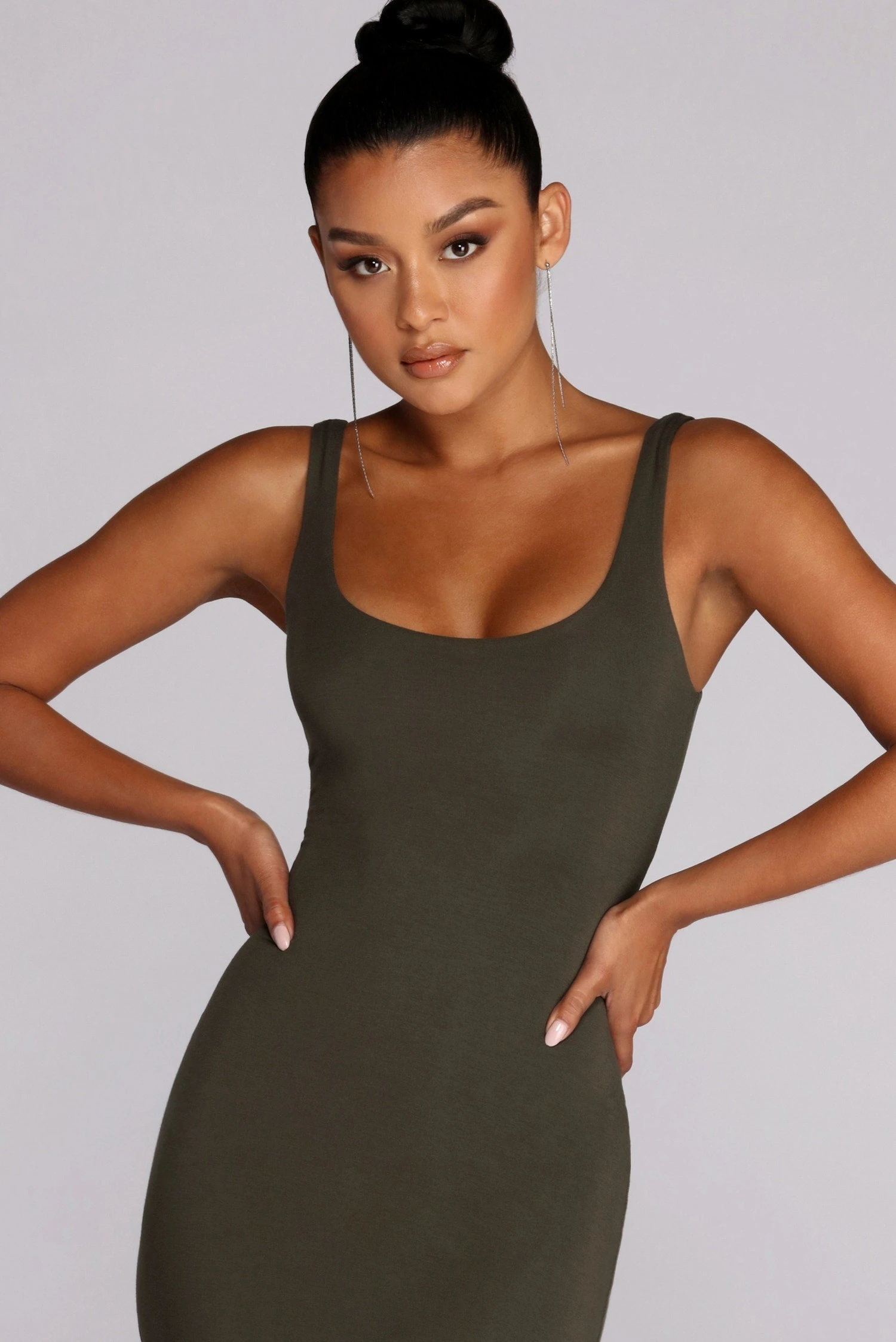Sometimes less is more! This basic midi length can be kept casual or paired with accessories to dress it up!