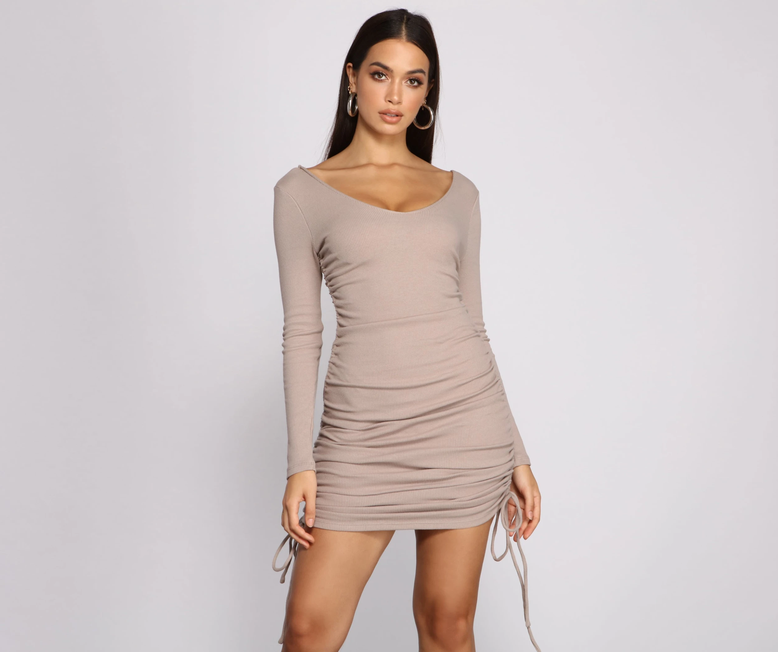 Fall back on this basic dress to stun this season! The dress features V-neckline, long sleeves, and ruched side seams to adjust for a customized. Style your dress with